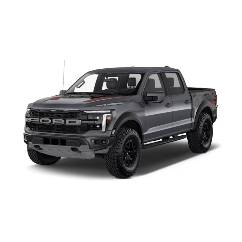 The 2026 Ford F-150 Raptor delivers rugged capability and high-performance power with a 3.5L V6 engine pushing 450 hp and 510 lb-ft of torque, paired with a 10-speed automatic and four-wheel drive for confident off-road and on-road performance. With seating for five, a towing capacity of up to 8,200 lbs., and a payload capacity of 1,410 lbs., it balances strength and practicality. Despite its bold size and 12-inch ground clearance, it offers a respectable 16 MPG combined, making it a versatile pickup built for adventure, work, and everyday driving.